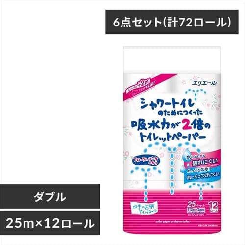【単品・セット】大王製紙 エリエール パフィー トイレットペーパー 長さが3倍 75m×12ロール ダブル 【プラザセレクト】【プラザマーケット】