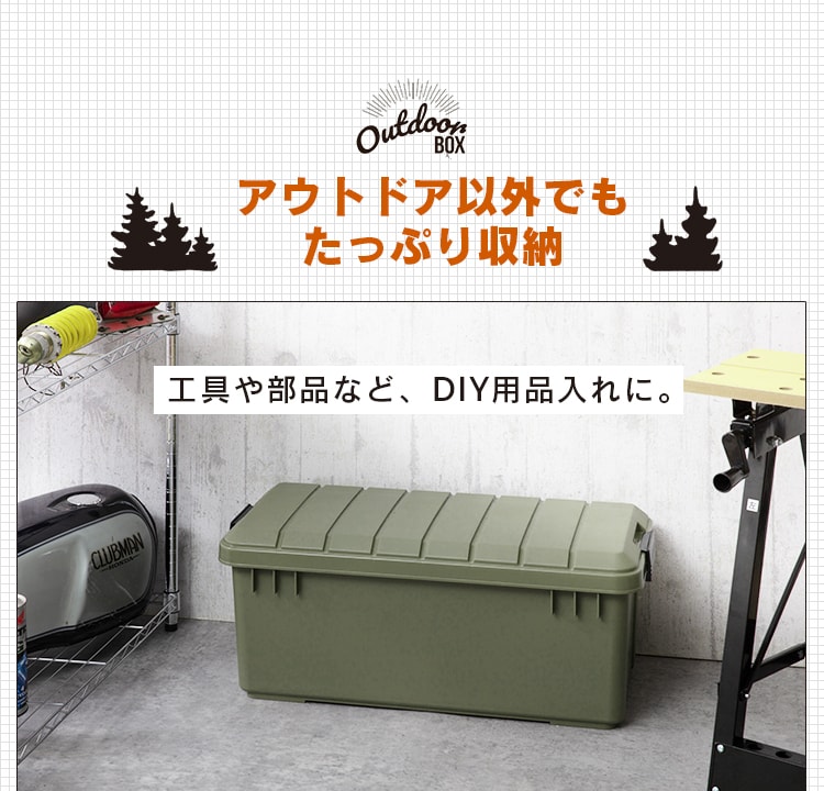 キャンプやBBQなど、アウトドア用品をたっぷり収納できるアウトドアボックス。